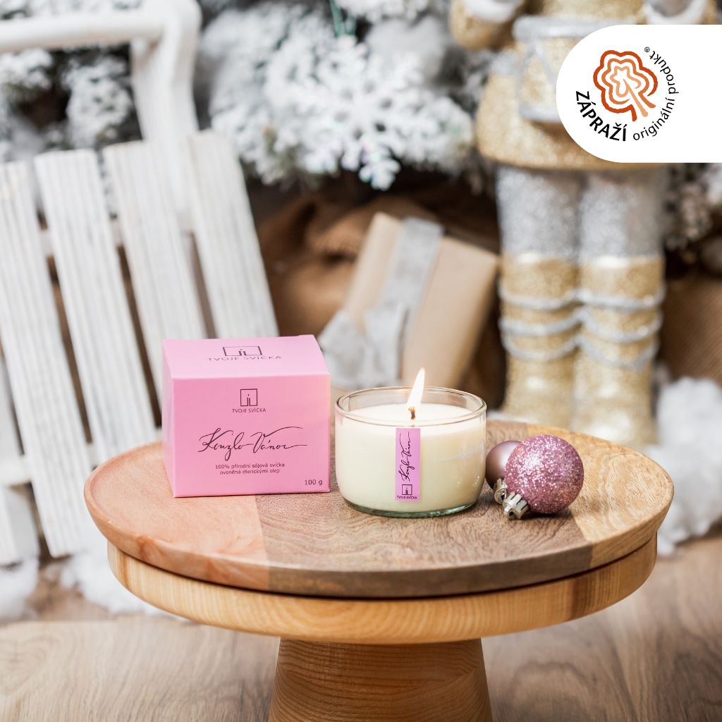 100% přírodní sójová svíčka, ovoněná 100% éterickými oleji a vyrobena ručně ve Středních Čechách.