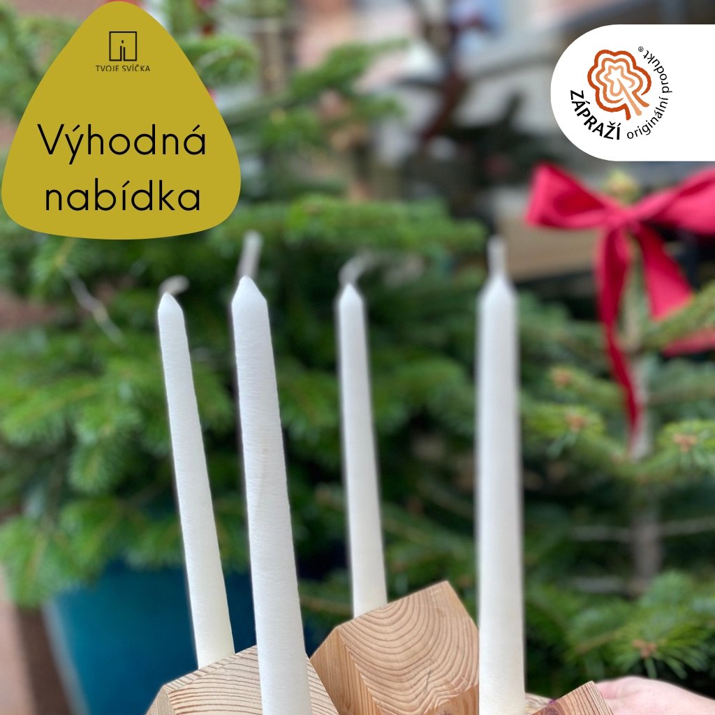 Adventní sada - VČELÍ SVÍCE kónická BÍLÁ 22,5cm