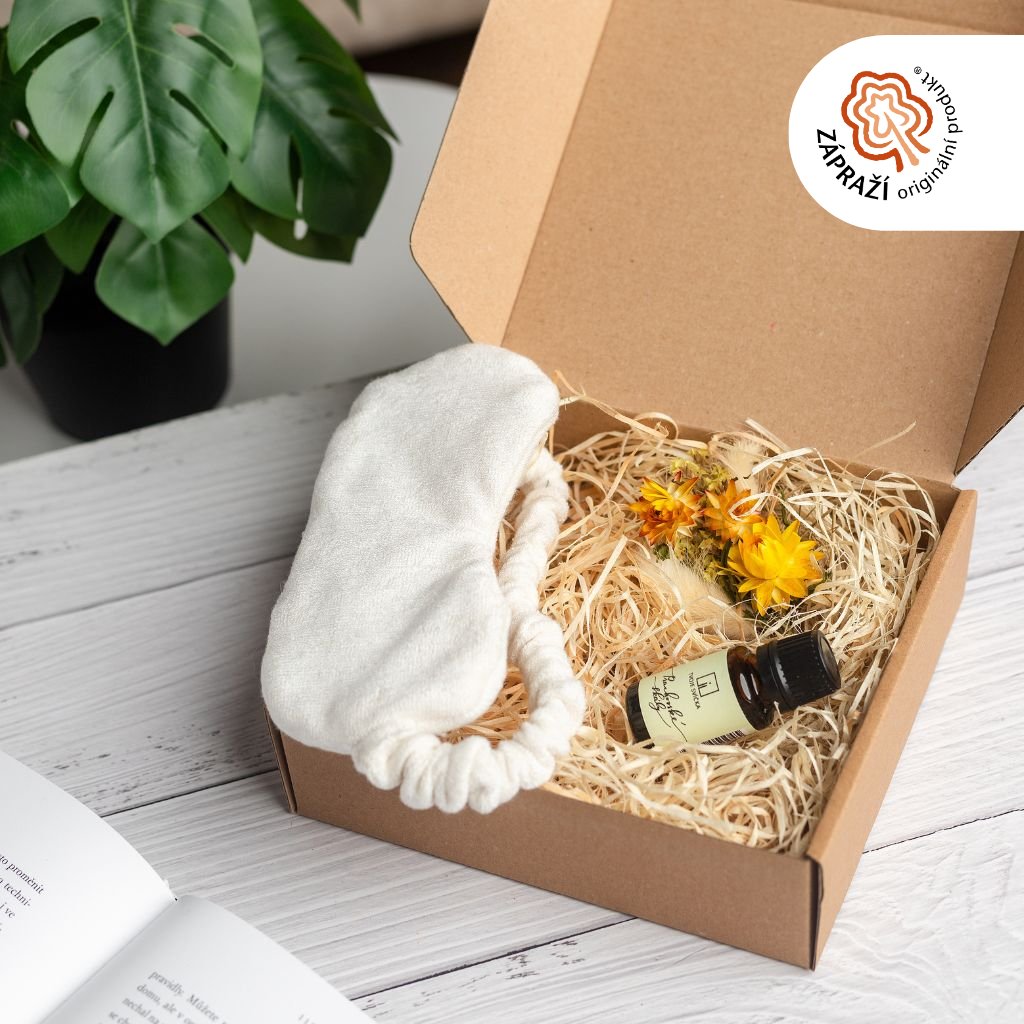 Zkuste pár kapiček pravé levandule na polštář a pokud doma nejste schopni dosáhnout úplnou tmu, maska na oči je Vaše řešení. Doplněno krásnou sušenou kytičkou od našeho partnera jan Diviš Zahradnictví na Váš noční stolek.