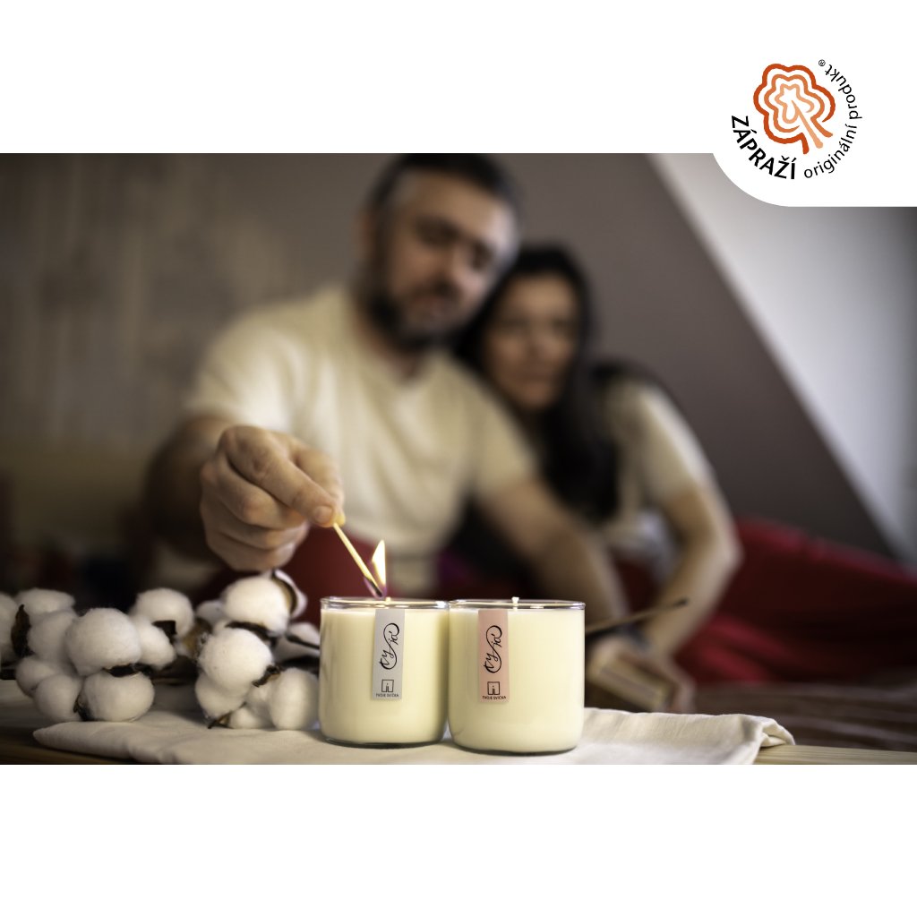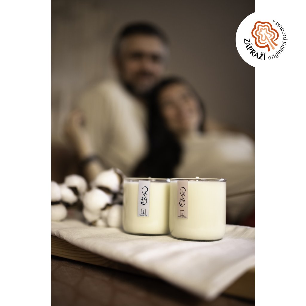 100% přírodní sójová svíčka, ovoněná 100% éterickými oleji a vyrobena ručně ve Středních Čechách.