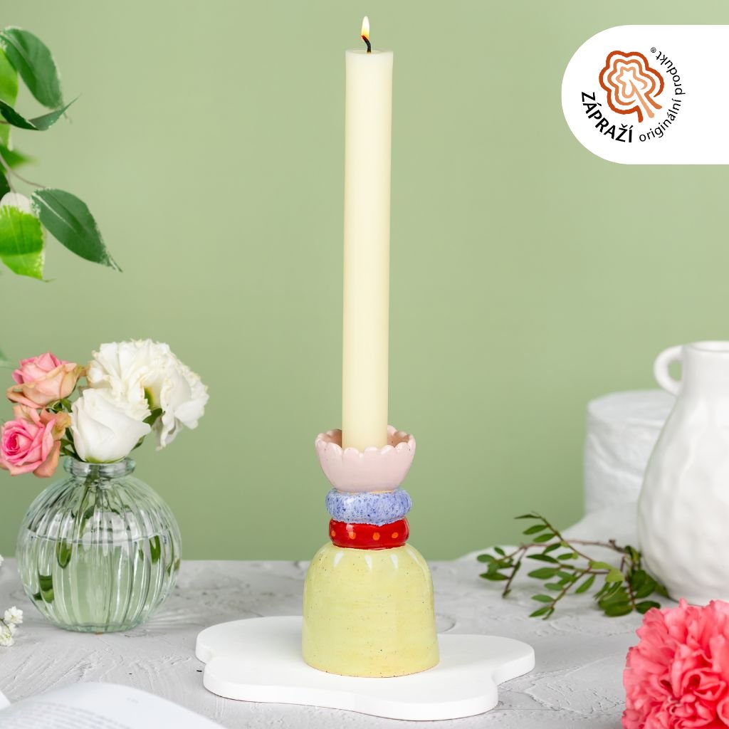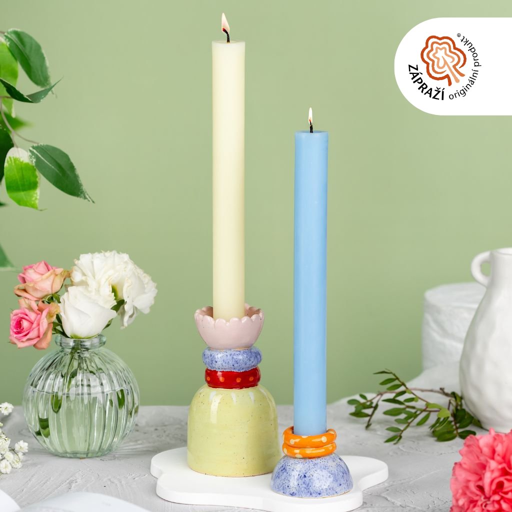 Keramický svícen na dlouhou svíčku 4-barevný