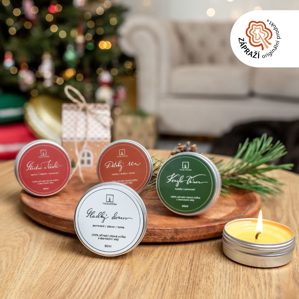 100% přírodní sójová svíčka, ovoněná 100% éterickými oleji a vyrobena ručně ve Středních Čechách.