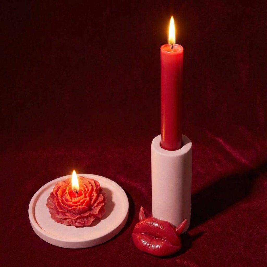 Vysoká svíčka a svíčka ve tvaru růže: