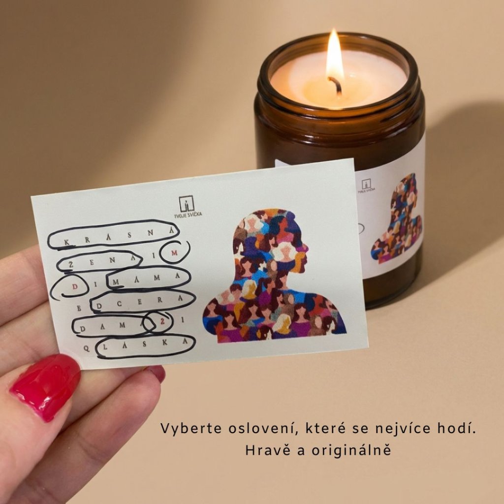 100% přírodní sójová svíčka, ovoněná 100% éterickými oleji a vyrobena ručně ve Středních Čechách.