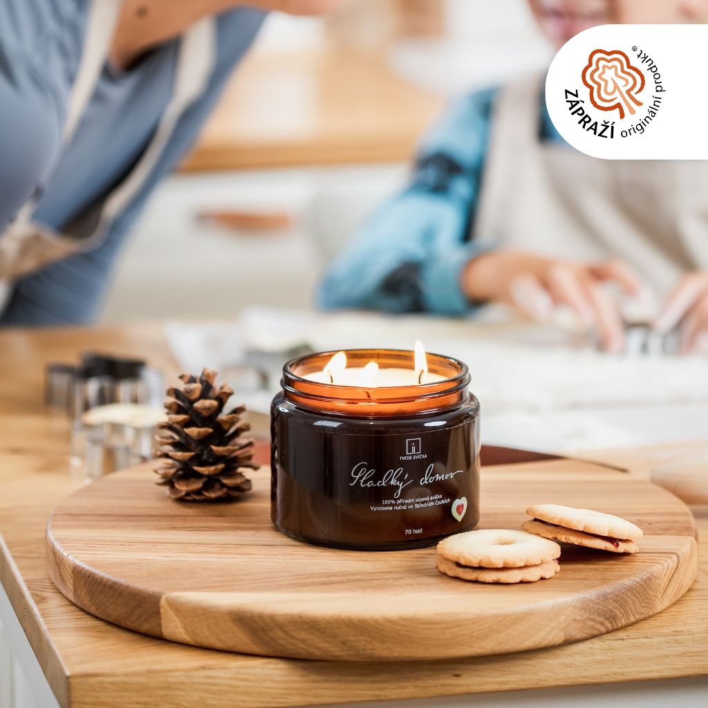 100% přírodní sójová svíčka, ovoněná 100% éterickými oleji a vyrobena ručně ve Středních Čechách.