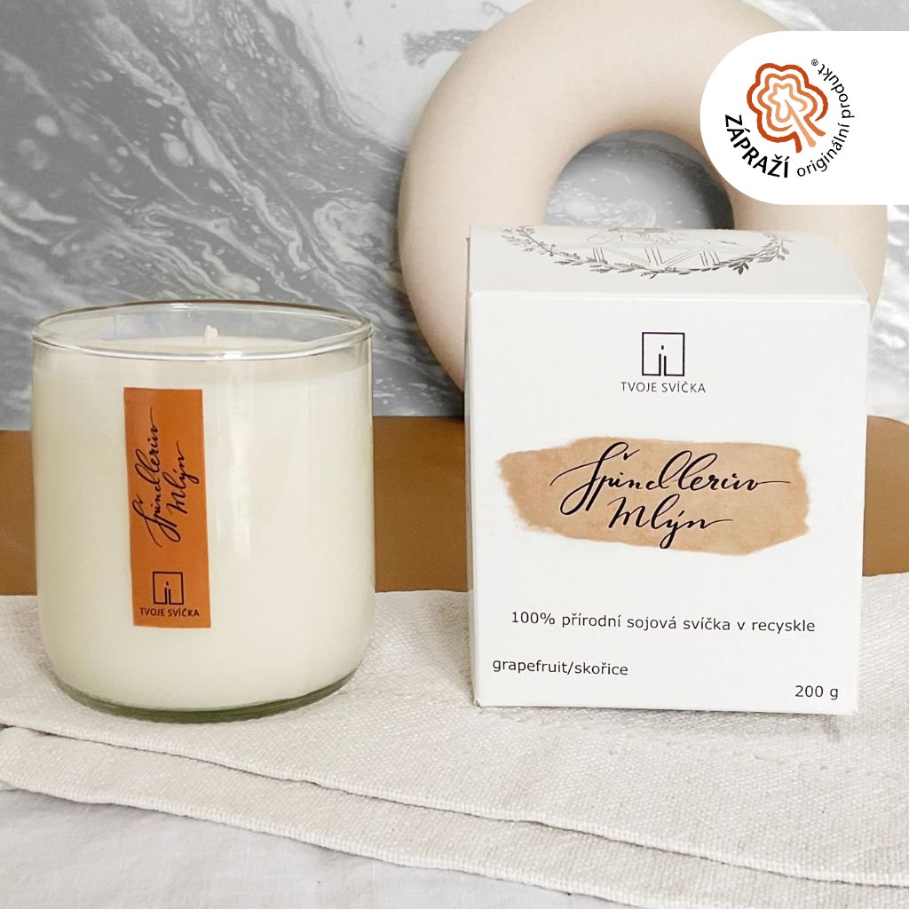 Vonná svíčka ŠPINDLERŮV MLÝN - grapefruit, skořice - recyklované sklo střední